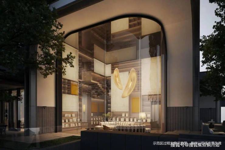 这个“超级树冠”界面的组合里,还布置了一个类似“钟书阁”的网红图书馆。可以想象夜晚华灯初上,这街角处的一盏暖灯与一脉书香,是业主归家动线上的一抹独特风景,也是凸显小区独特气质的一种图腾。