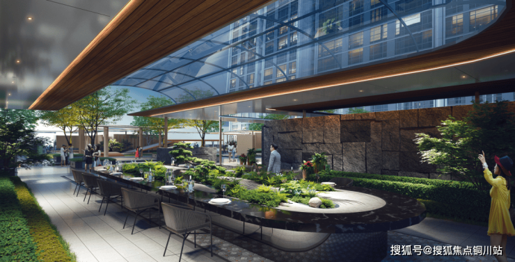 顶层天际花园带来了独特的“热带植物微生境”和“CLUB +”体验。实现天文观星平台、空中酒廊、空中电影院等多场景视听享受。让业主随时随地可以坐下来独酌一杯,享受与天空、城市对话。