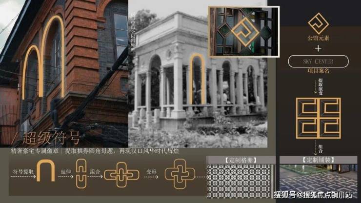 在铺装纹样设计上,景观从经典公馆的花窗中汲取灵感,以及线条、体块的巧妙组合,让古朴元素焕发出现代构成的冲击力与美感。格栅的设计则提取自骑楼建筑拱券的圆角母题,衍生定制金属格栅,形成了独特的项目身份标识。