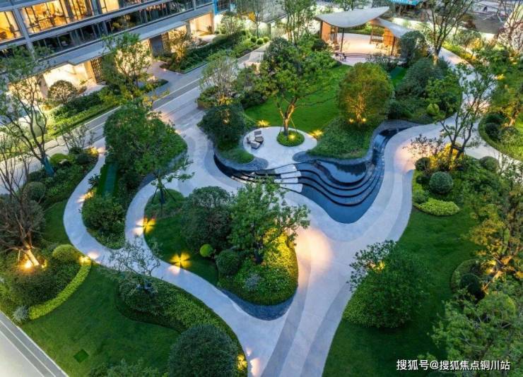 正式进入示范区,首先映入眼帘的,是近3000方的共享会客厅,作为三大中心花园之一,全世界甄选49种植被设计打造,层次丰富,搭配黑山石和水景,营造曲径通幽的归家之路,未来还能增加小业主对于植物的认知度。