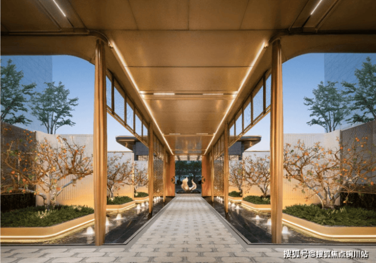 因此,项目选择将产品力前置呈现。紫薇金澜打造约70米宽酒店式大门,以温德姆灰石材与普拉达绿奢石铺陈归家仪式感;约200米风雨连廊贯穿园区,串联下沉庭院与阳光草坪,让归家动线兼具功能与美感;约1000㎡下沉式会所,配置私宴、健身、童梦剧场等功能空间,满足生活所需。