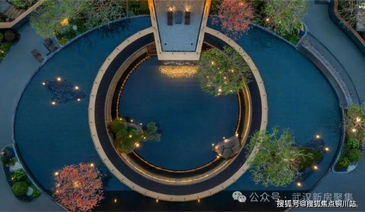 承袭中国传统建筑至高礼制,以当代技法形制庑殿顶,卓立近83米府门威仪;日本进口百年名松,象征基业长青;匠造垂麟铜门,护佑尊荣福气;地面云纹石材,寓意平步青云;手工雕刻宝瓶葫芦艺术装置,将《江汉揽胜图》的繁盛风貌镌刻其上,重现武汉千年风雅。