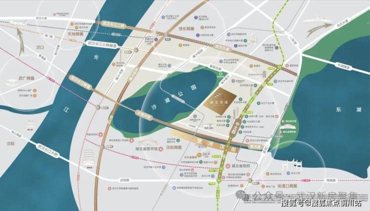一条中北路,精粹武汉心。约3km内汇聚武汉超半数省级以上金融机构,约2km内100余家省级行政单位、省属国企办公总部汇聚,约1.5km中央文化区(楚河汉街+SKP)。华中金融主轴、武昌政务主轴、中央商业主轴三大主轴鼎立,一城高阶资源精粹于此,共襄武汉内环上的城市封面。