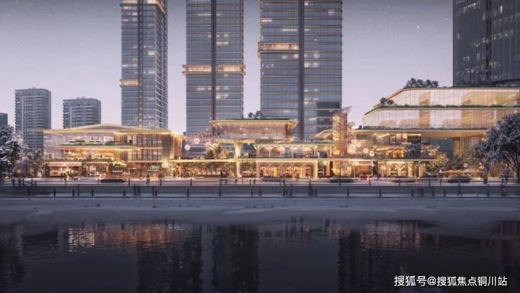 联投中心临江一面的效果图中,有3栋商办塔楼: