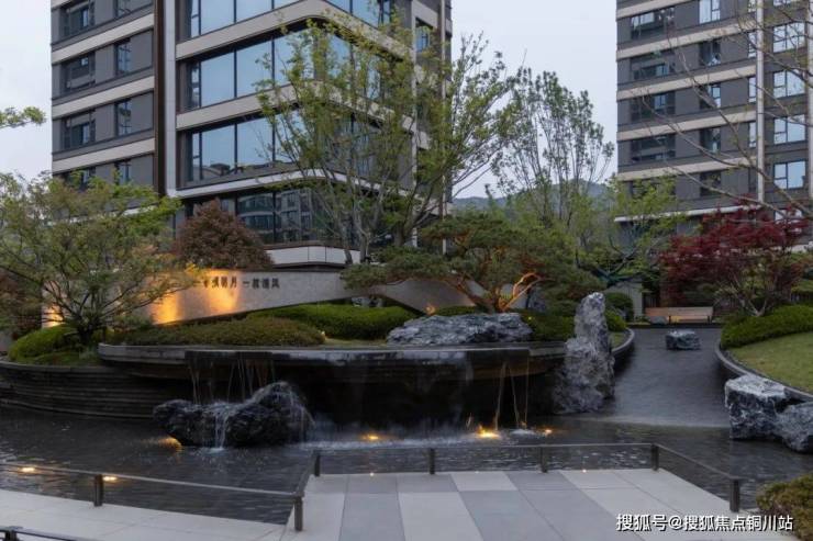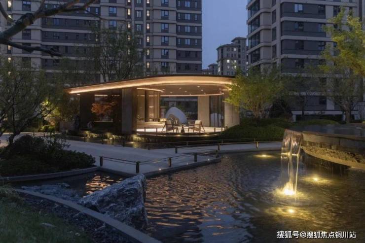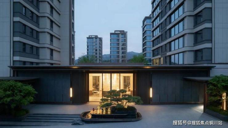 项目入口打造超长横向延展的酒店式大堂空间。入口处匠心雕琢盆景式迎宾流水景观,彰显仪式感。让每一次归家都成为充满期待的尊贵礼遇。