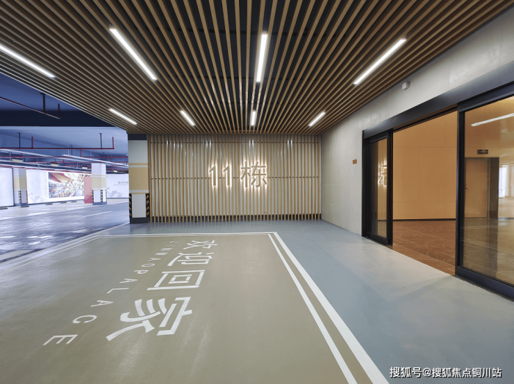 地库通往地下大堂的入口处,还做了格栅设计,并配置一体化线条灯。