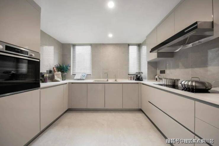 U型厨房是这两年得宠的设计,通常是扁扁的长方形,而这套跃墅的厨房,却几乎是一个正方形U字,面积达到了约12㎡。