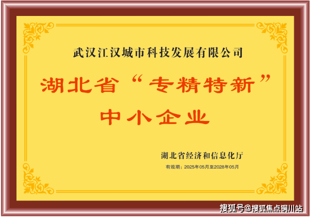 城发公司荣获“湖北省专精特新中小企业”认证,多项专利与软著,以科技赋能发展的硬核证明。