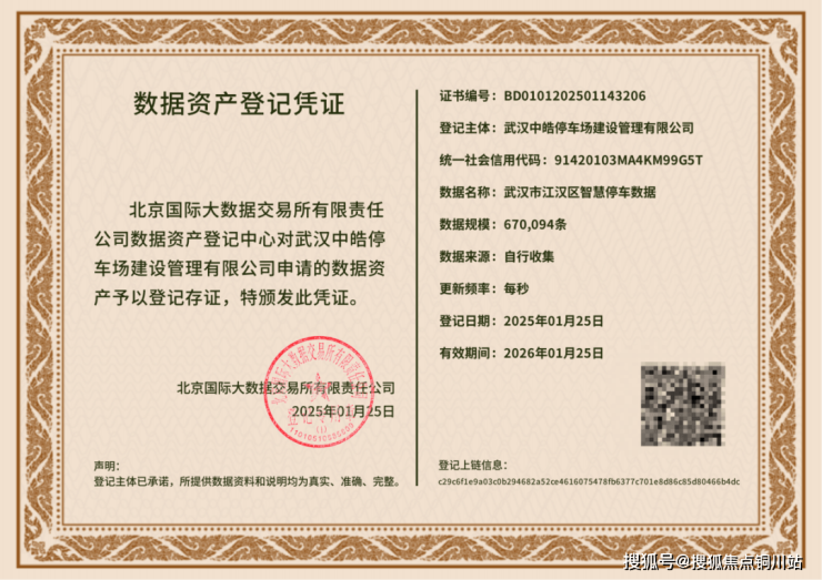 实现江汉首例智慧停车数据资产入表,为城市公共资源的创新运营探出一条新路。