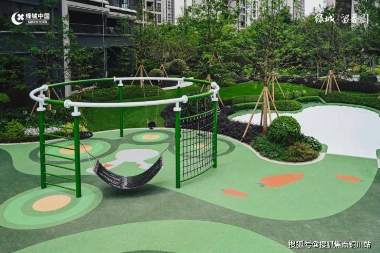 星空主题儿童乐园,把“宇宙星空”搬到业主楼下。沙池里不是传统的海沙,而是白色石英石打磨而成的白沙,不伤皮肤,没有粉尘;沙坑圆角、20毫米厚的EPDM透水地垫,孩子们玩耍更安全。