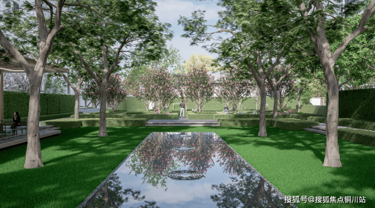 中心草坪做到了竖向抬高,有别于传统草坪的单调性,北区草坪中央植入水景,感受林间涌泉的灵动之美。