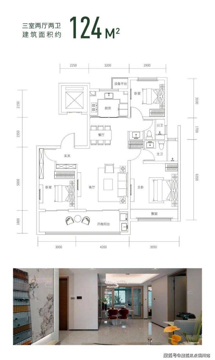 ·建面约124㎡宽景三室