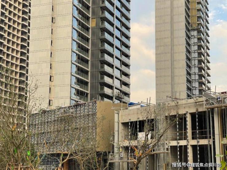 所有高层均已实现封顶,前排3栋楼的石材立面已全部挂装完毕,后排几栋楼的外立面干挂石材施工也进入收尾阶段,再过不久,整个社区统一而大气的建筑天际线就能完整呈现。