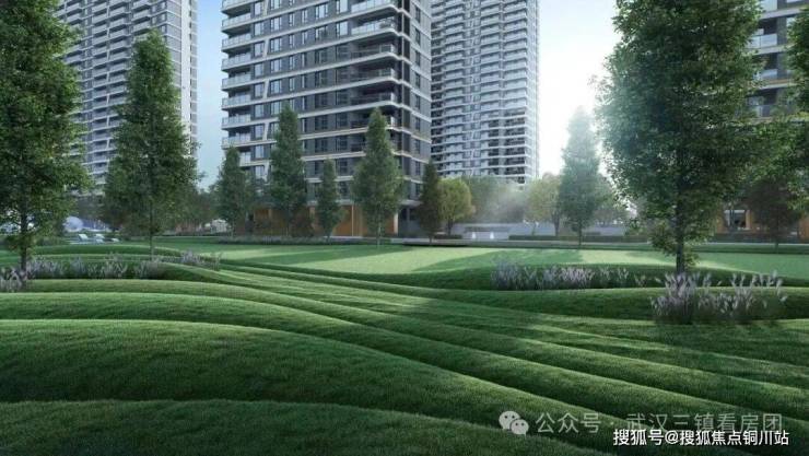 【海浪绿洲】沿着内部的自然生活中轴向南打造的复合草坪空间。设计形成长达37米,宽达94米的大型草坪绿地,大人和孩子都能开心玩耍