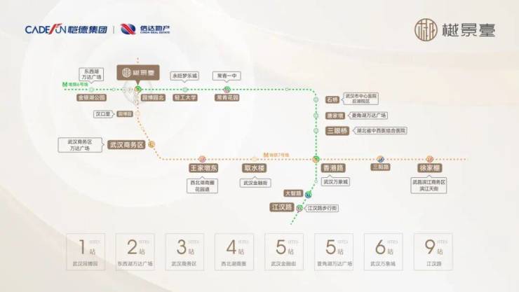 金银湖万达2站,CBD3站,西北湖4站,金融街5站,万象城6站,江汉路9站