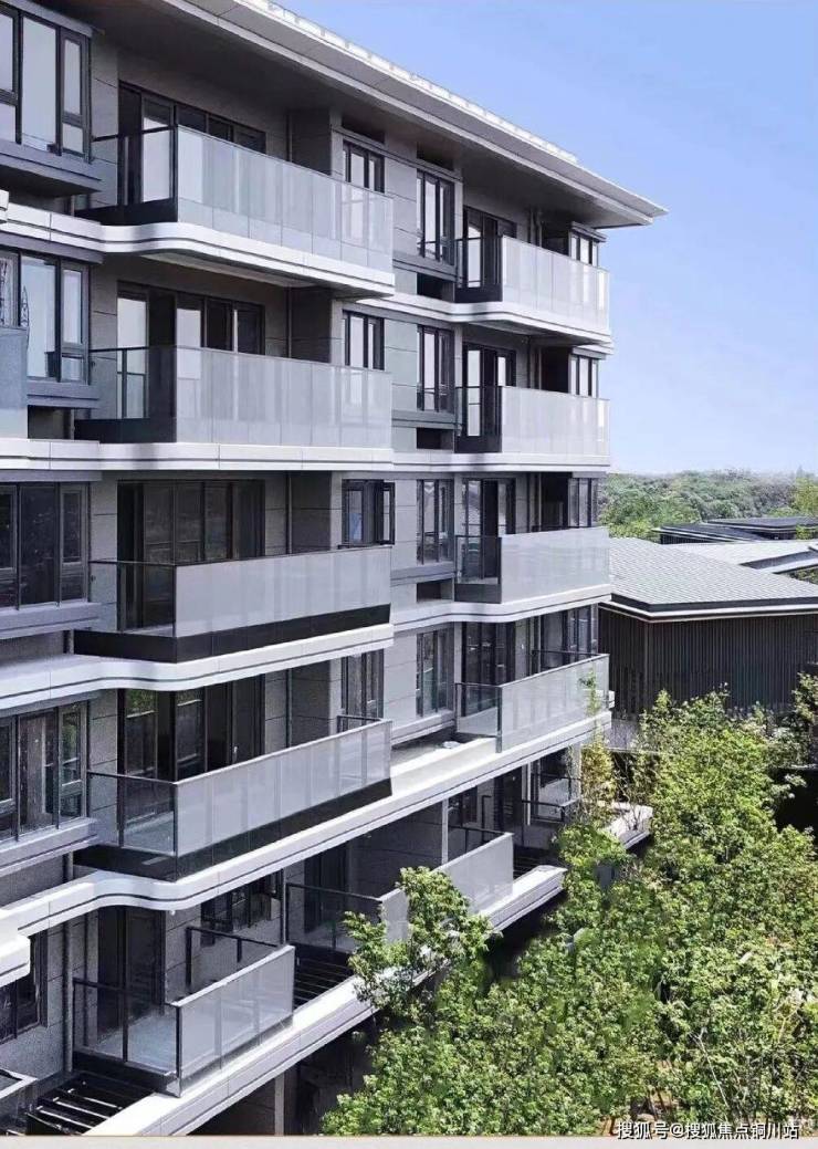 项目外立面采用超流体设计,独特的“微笑曲线”建筑立面,极具辨识度;高品质铝板搭配石材、部分涂料和大面积落地玻璃,带来极限窗墙比和轻盈通透之感,“颜值”高高在线,阳光下散发耀眼的光泽,高端社区的品质感扑面而来。