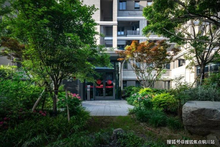 小区单元入户门的颜值也非常抗打,弧线曲面、挑空大厅,搭配仪式感满满的草木花卉小景,处处都透着优雅与格调。