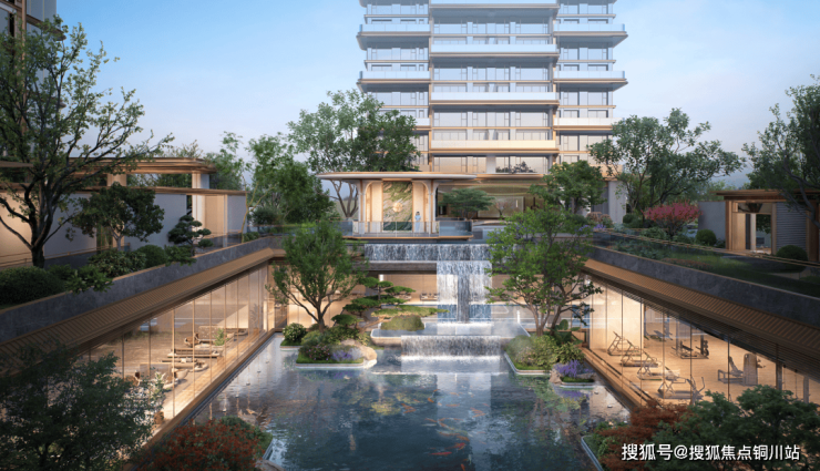 在当下极流行的立体下沉式庭院的基础之上,建发·瑞云又创造性地引入了栖云亭、流云桥以及高达七米的三叠泉瀑布设计,勾勒出一幅灵动而幽深的中式山水画卷。