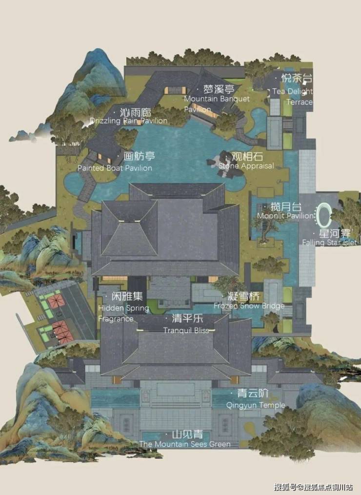 示范区园区景致宛如宋代绵长的琴音回响,以“宋韵”为核心,深植于山水交融之中。碧波荡漾的池塘与屹立不倒的山石相映成趣,步移景换间,每一角落均沉浸在自然和谐与人文雅致的交融之中。设计师巧妙选取与自然和谐共鸣的植被,凭借精细入微的构图与巧思布局,把植物的生机与空间的魅力编织成一幅现代与诗意共融的园林画卷。