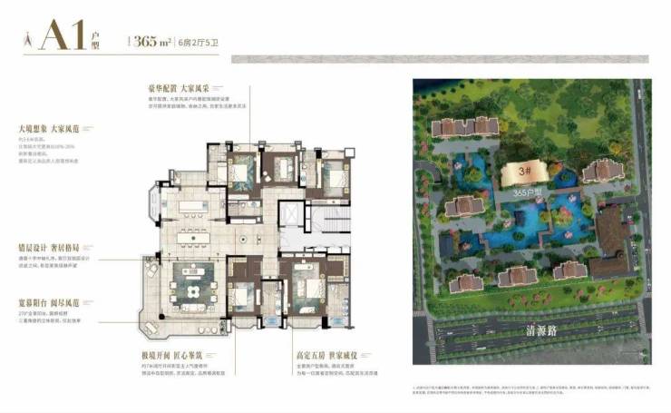 在户型设计上,项目打造建筑面积约 166 - 365㎡的奢装大平层。以建面约 365㎡户型为例,6 房 2 厅 5 卫的设计,包含 2 套房和 1 套保姆间,实现主仆动线分离,保障主人生活私密性。主卧套房设计独特,独立衣帽间不占用卧室空间,明卫设计让业主沐浴时也能享受阳光,一步阳台设计增强了卧室通透性,仿佛置身于酒店般惬意。建面约 251㎡户型采用错层结构,专属入户营造私密感,约 5.5 米大开间、南北双阳台配合约 3.5 米层高,空间阔绰大气。建面约 212㎡户型以十字中轴构建开阔空间,约 5.1 米阔绰宽厅搭配南北双阳台,通透明亮,4 房设计适合三代同堂。建面约 166㎡户型拥有 7.1 米阔绰横厅,LDK 一体化设计提高空间利用率,三房两卫设计对于小家庭来说恰到好处。