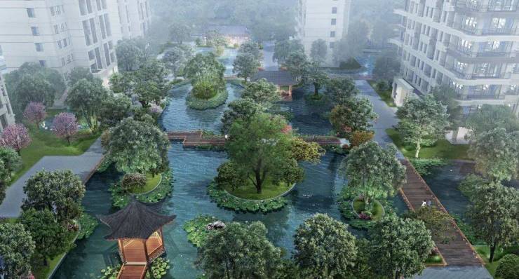 园林景观堪称无锡星河湾的一大亮点。项目承袭香山帮造园技法,将国粹榫卯工艺融入其中,筑以六角凉亭和茶轩,打造中式经典园林。在园林中,能看到大量运用榫卯工艺构建的亭廊轩,其精致程度令人赞叹。