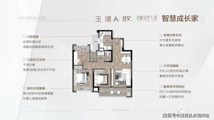 玉 璟 | A户型 | 建筑面积约89㎡ | 三室两厅一卫