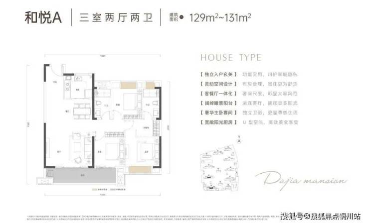 建面约112-113平三房,单看可能觉得比较常见,实际上有许多巧心思在里面。