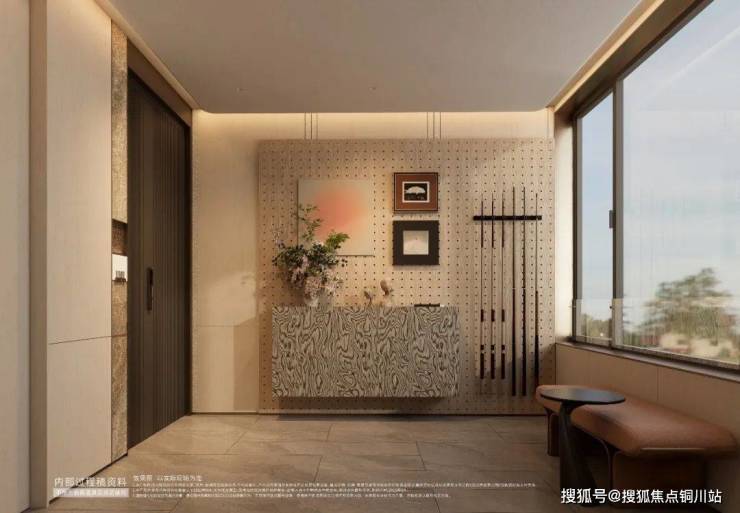 一梯一户的私梯模式,顺势将10㎡左右的电梯厅化作外门厅,并配置几乎等开间的玻璃窗,构成全明的“编外”功能间,进一步强化整个归家动线的质感。