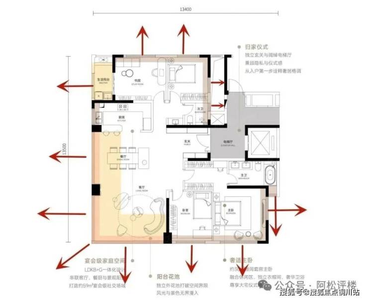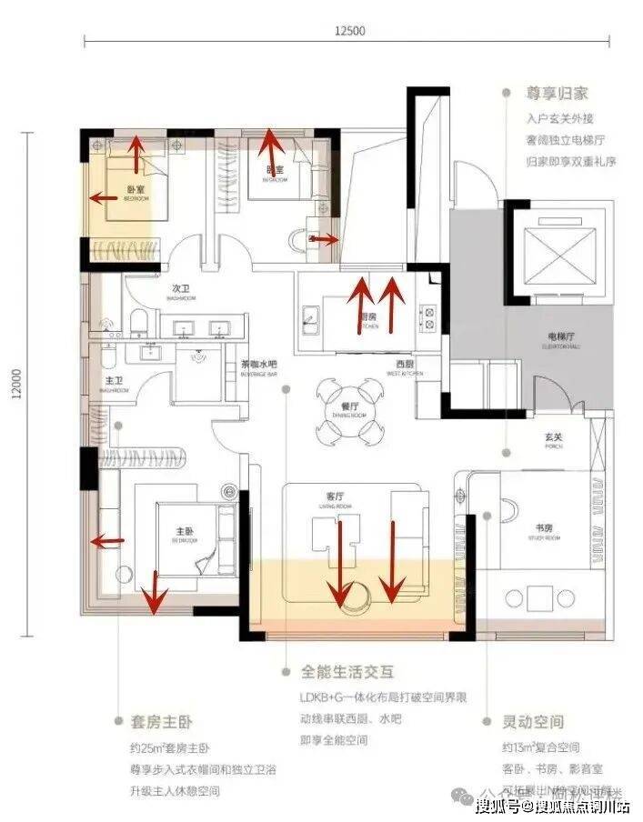 作为准四代住宅,该户型亮点非常明显: