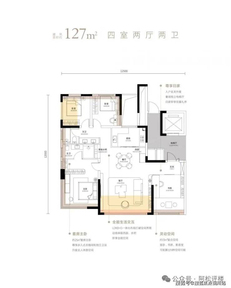 亮点二:建面约127平四房设计+类“四叶草”结构的功能布局,功能性与舒适度更强!