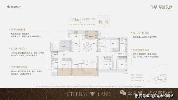这款建面约174㎡的4+1房两厅三卫,则将平墅级的顶豪感贯穿始终。