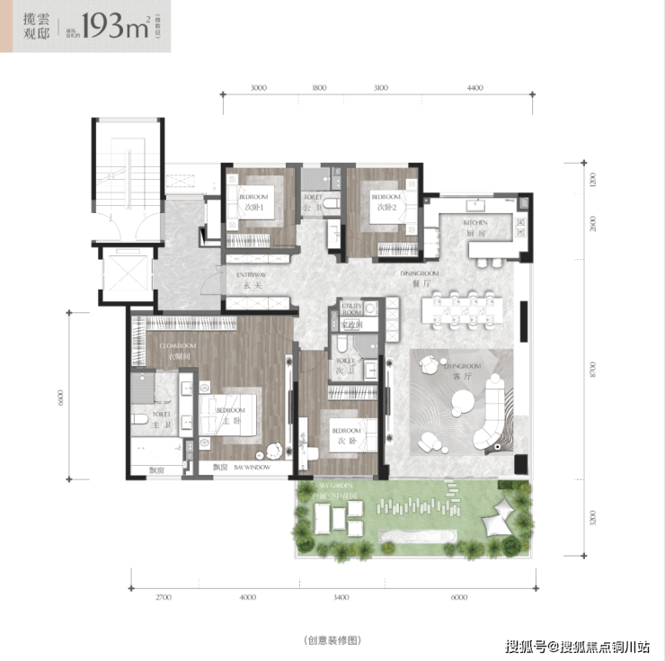 193平的户型则是对标230左右的大平层,动静分区,大边厅设计,边厅外侧是一个40多平的空中庭院,类似琼华九璋的退台设计,单看户型图就非常让人心动。
