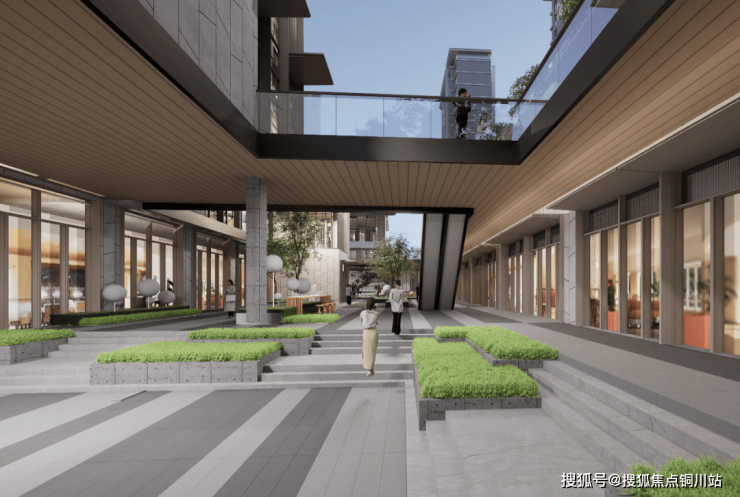 以“邻里不一样”的主题定位,采用“多首层、开放式”建筑布局,于用地南侧打造出功能复合、空间多样的邻里中心型TOD,成为承载“新邻里”内涵的社区空间。摆脱传统盒子式商业形态,采用街巷式布局,打造7000平方米开放式街区,以连廊进行功能衔接,结合景观、休闲设施打造舒适的商业配套空间及全天候社区聚场,为周边居民提供舒适的惬意空间,激活了住区人文生机和商业活力,成为了居民除家和公司、学校外的第三生活空间。