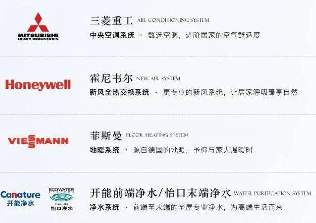 三大件分别是三菱重工中央空调、德国菲斯曼地暖、霍尼韦尔新风系统;全系SMEG(厨电届的爱马仕)厨电全套是基本操作,最高配到8件套!