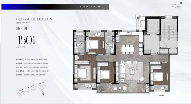 小高层:建面约150㎡四房两厅两卫