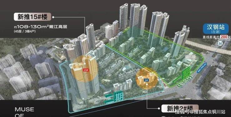 2#楼花园洋房、15#楼瞰江高层位于二期头排C位,南向临近琴台大道,视野开阔无遮挡,北向超阔楼间距,采光和景观资源更好。