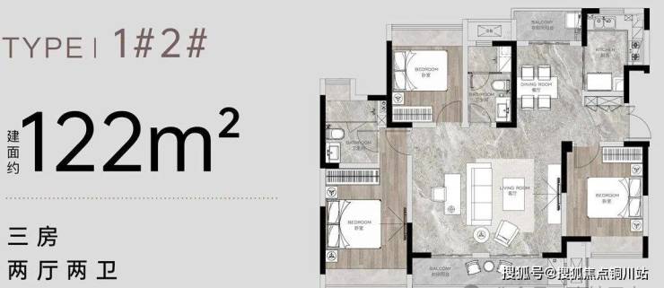 此外还有入门级的建面约108㎡三房,同样是大面宽,大尺度的空间,在面积与功能间得到较好平衡,上车门槛更低。