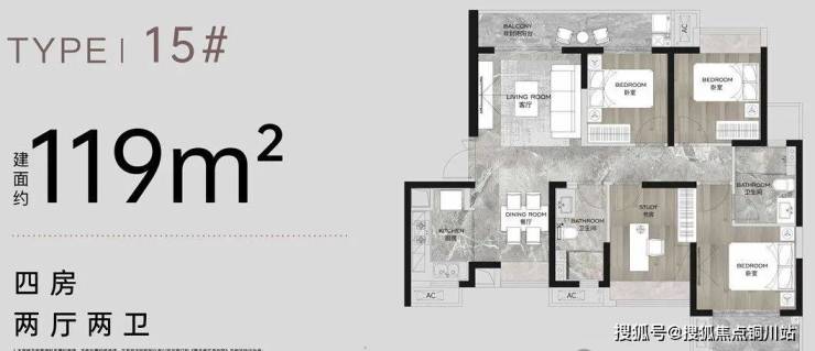 建面约119㎡改善王炸级四房,非常适合考虑内环滨江但注重性价比的家庭。