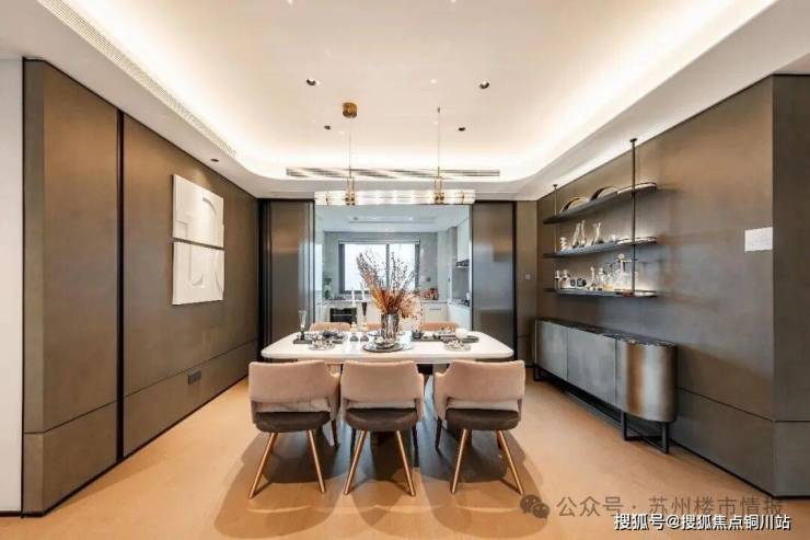 真正体现产品差异化的,是那些严苛臻选的精装材质的和匠心独运的工艺细节。芬迪白岩板背景墙以随性而灵动的天然纹理营造出静谧优雅的空间氛围;圆弧吊顶以流畅弧线弱化生硬边界,让客餐厅空间更显开阔柔和,氛围感一秒到位;沙发墙的皮革背景与餐厅的深色木饰面层次呼应,呈现出一种摩登都市的素雅与温馨;厨房的艺术玻璃移门、电视背景墙的仿古铜拉丝工艺、主卧增配的高颜值背景墙……每一处皆围绕“如何让生活更雅致”而展开设计,把格调与审美焊在空间里。