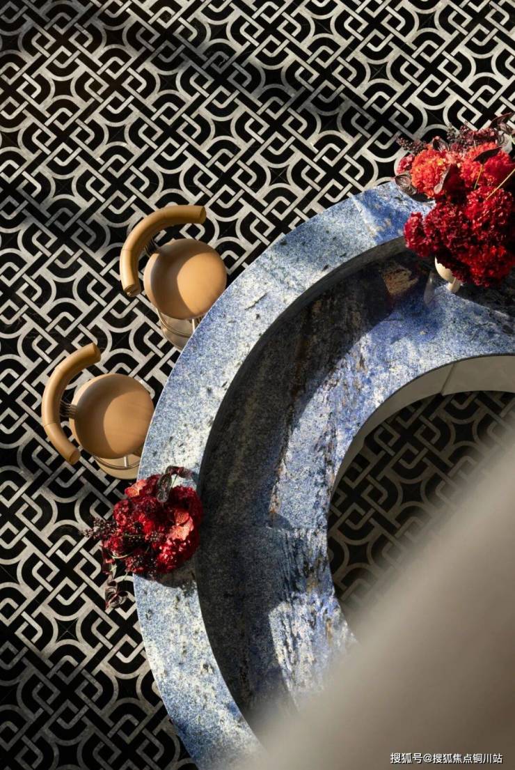 大门对面的珐琅彩屏风上,布满了珺璟和煦定制化的图案符号,以现代釉彩工艺呈现,瑰丽的珐琅釉色,既呼应天津地标西开教堂的斑斓彩玻,也与五大道经典的马赛克艺术隔空对话,是对天津“华洋杂处”历史孕育的独特美学,一次精妙的诠释。