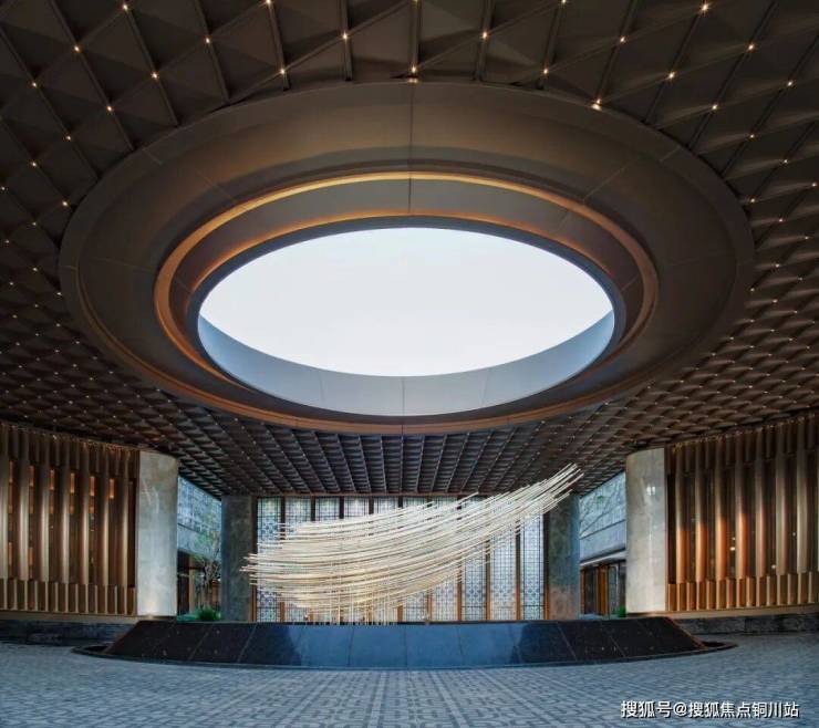 大门落客区的点睛之笔,是一尊名为“星辰之恋”的艺术雕塑。保利特邀中国美术学院施海教授匠心打造,巧妙捕捉晨昏更迭、光影交错之韵,搭配背后的珐琅彩屏风营造出深邃而诗意的宇宙意境。