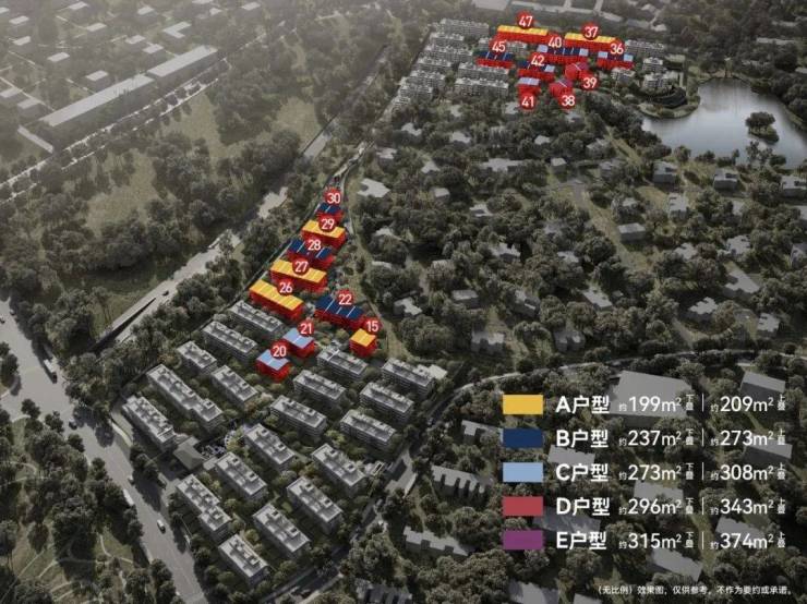 户型就直接由约199㎡起跳,主力约230-270㎡,最大的则是临湖而居的约290-390㎡定制户型。