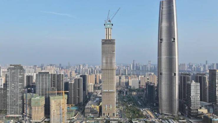 据悉,武汉长江中心位于武昌滨江商务区核心地段,项目总建筑面积163万平方米,总投资约300亿元,涵盖云端办公超塔、旗舰商业、住宅和创新行政公寓等多元业态。其中主塔楼"长江之琴",建筑高度380.45米。