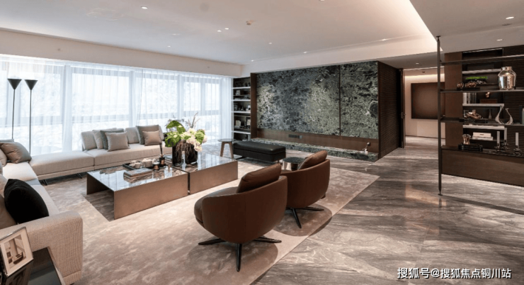 以无界人文艺术设计为主题,摒弃浮华与繁琐,天然奢石与金属、实木互为搭配,安静的材质、柔和的色调、大道至简的陈设理念,共同将简与雅做到极致,建构当代人文生活理想。
