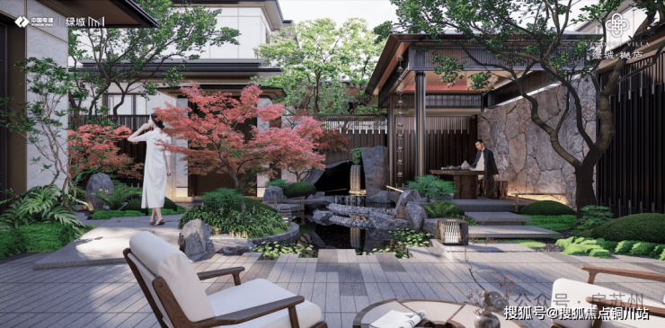 例如园林,景观遵循苏州家族传统坊巷肌理,打造六进归家礼序,从溪樾名门到听泉林院,移步异景间,尽显东方生活哲学的奢雅与矜贵。