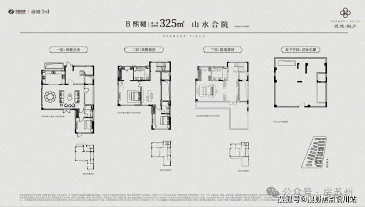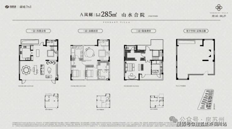 先来看合院,主力建面约285/315/325㎡三个面积段,均是地上三层。