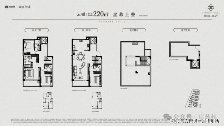 叠墅面积段约200-305㎡,上下叠动静分区,全套房设计,其中,下叠带花园,上叠送星空大露台以及地下空间。
