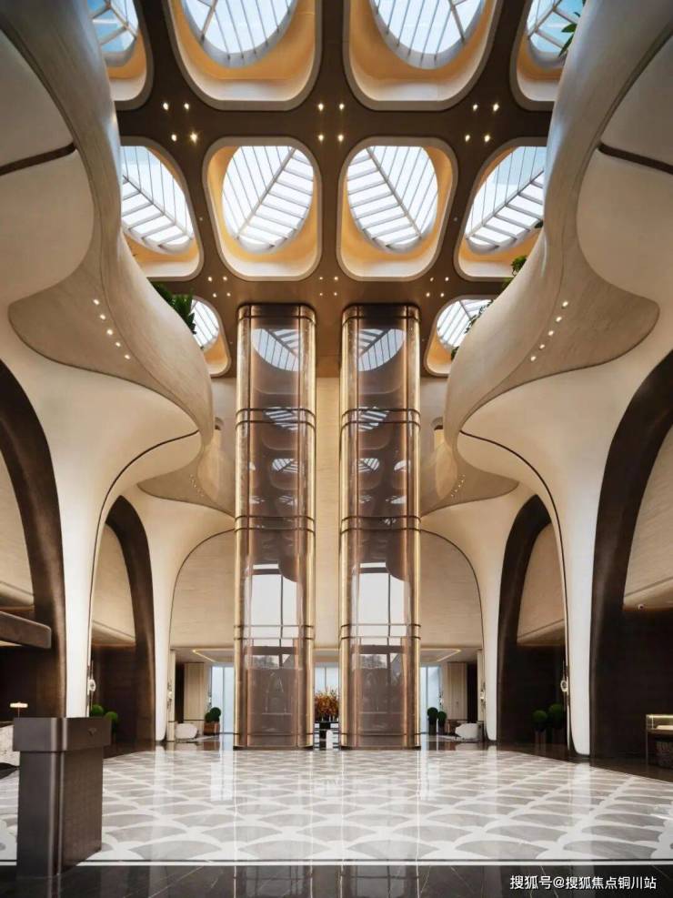 生活的仪式感,从归家开始,约18米高的艺术大门是全武汉最高的小区大门之一,大门设计采用教堂式天光穹顶,地面铺装使用保加利亚灰石材与银杏叶图案拼花,整体风格融合了海派建筑元素;