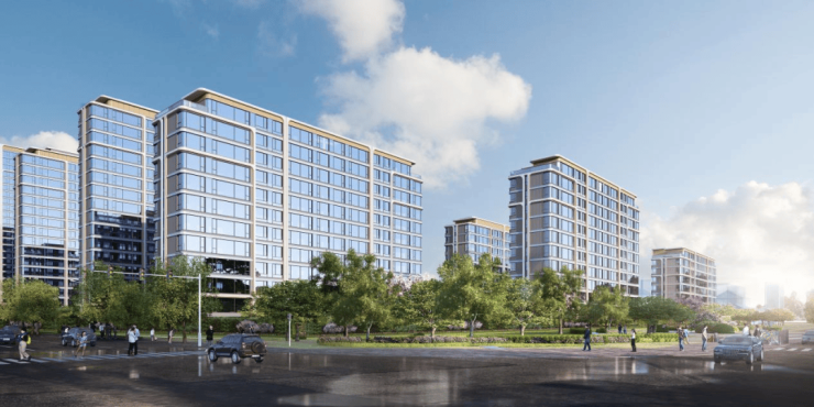公建化玻璃幕墙立面:让居住建筑拥有了城市地标的美感,瞬间提升了整个区域的颜值天花板;