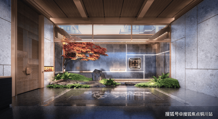 采用大量采用朴拙的原生石材与精致的金属材质相结合,营造古朴与雅致融合为一的意韵。同时,石畔流泉细语,庭院幽深为邻,松隙小径回绕……营造一种隐世又不离烟火气的中式禅境。